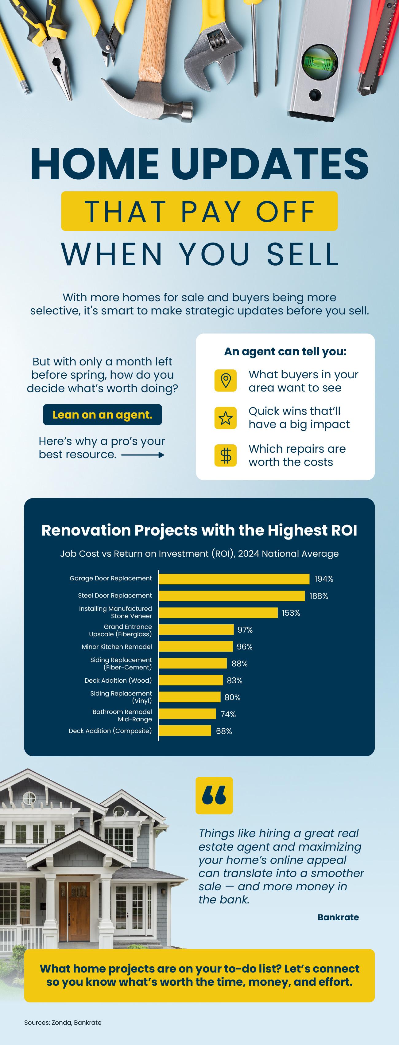 - With more homes for sale and buyers being more selective, it’s smart to make strategic updates. But how do you decide what’s worth doing? You lean on an agent.